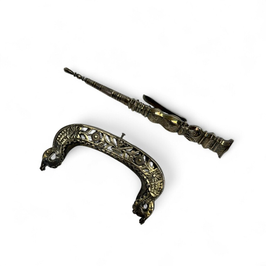 2x 19e eeuws zilver: breinaaldenkoker, Reitsma Heerenveen & beursbeugeltje, van Geelen Schoonhoven