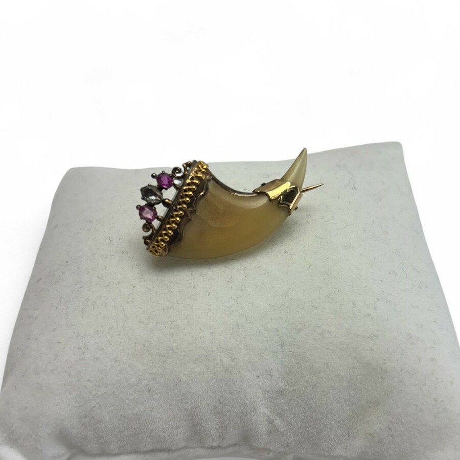 Indonesische gouden tijgertand broche met robijn en diamant