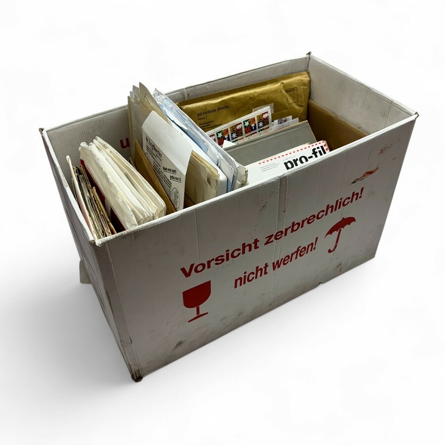 Lot diverse postzegels in doos