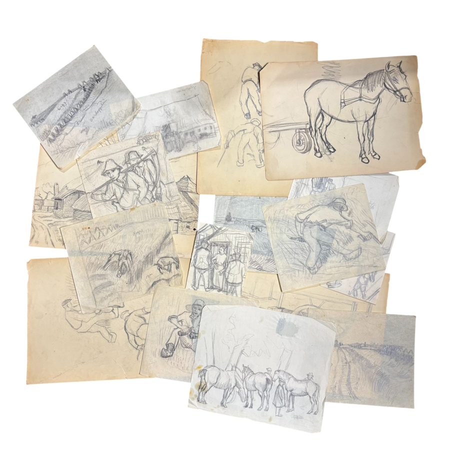 Een lot met poltood en houtskool studie tekeningen.