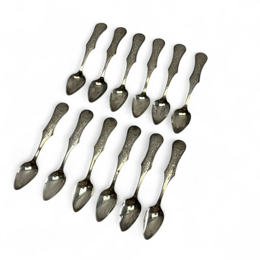 Twaalf zilveren advocaatlepeltjes, van der Ree Schoonhoven 1848