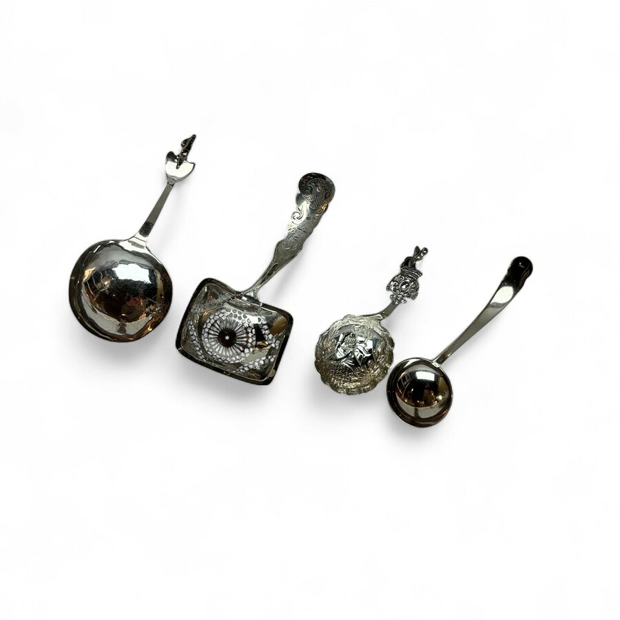 Drie zilveren roomlepels en een strooilepel