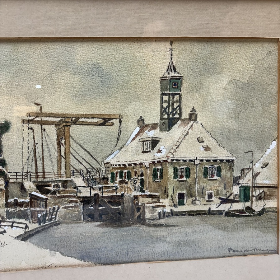 Poppe Damave (1921-1988) en R. Bremmer (1900-1993). Aquarel Amsterdam en Litho de schillenboer,