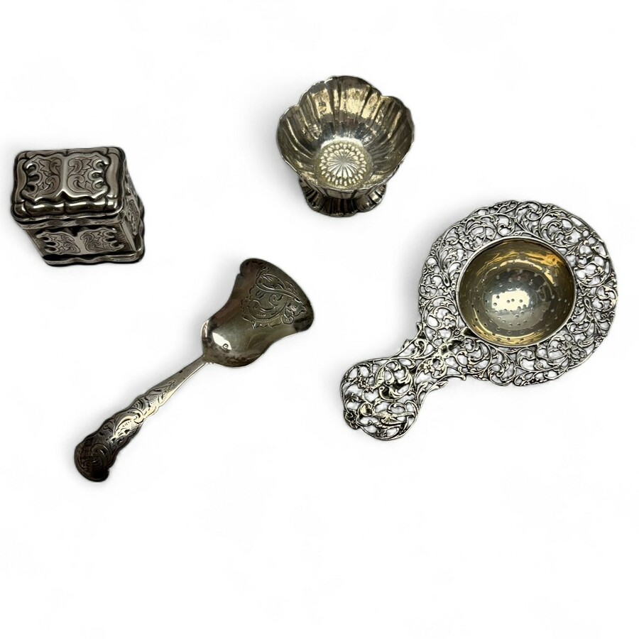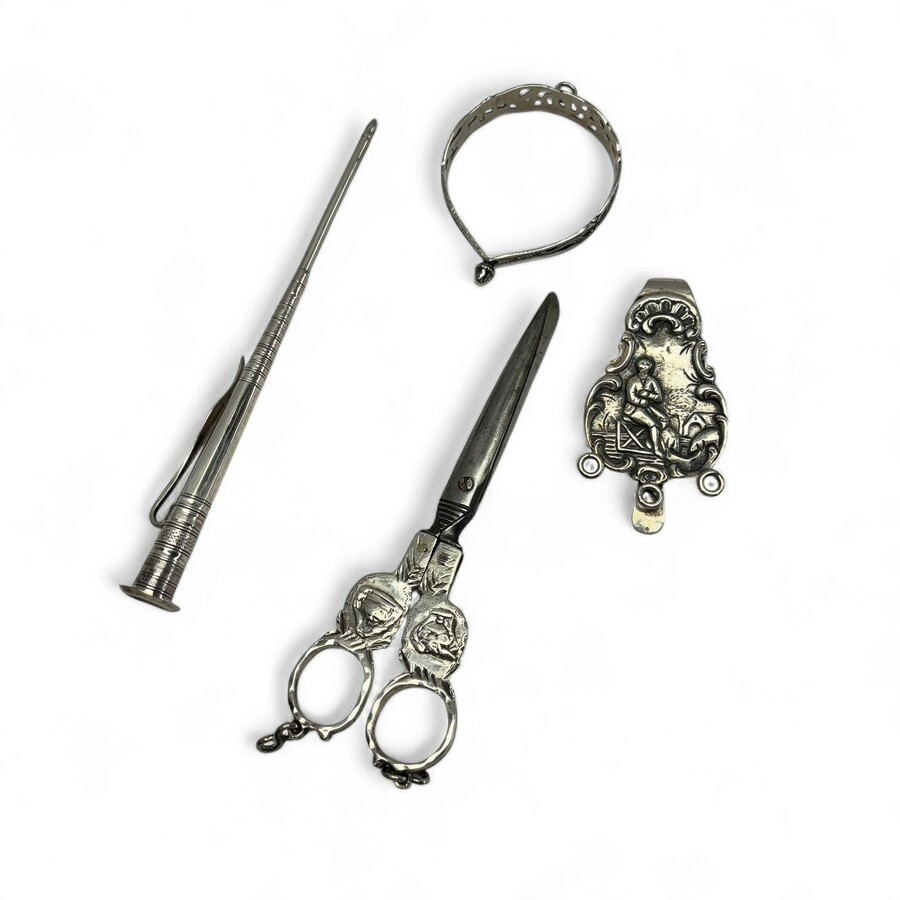 Lot divers zilver, o.a. naaischaar, rokhaak en montuur voor speldenkussen