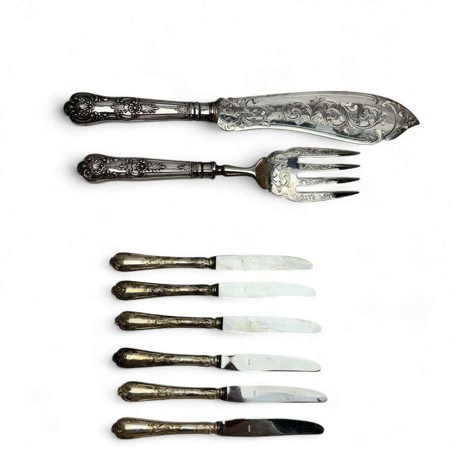 Zilveren natfruitschep, cakeprikker en roomlepel
