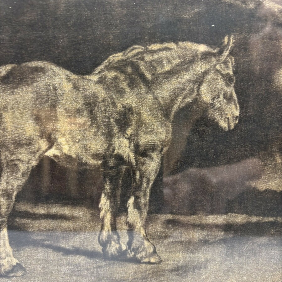 Mezzotint op papier, voorstelling van een staand paard.Linksonder gesigneerd Willem Gerard Hofker (den Haag 1902 - Amsterdam 1981),