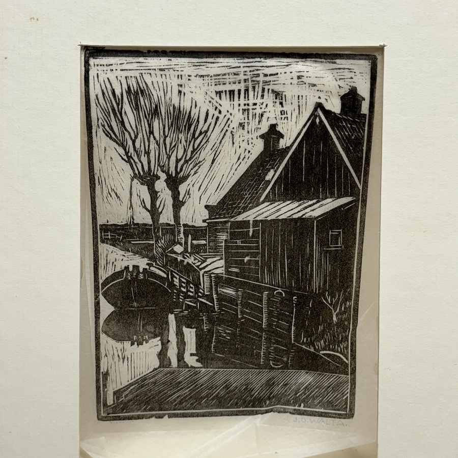 Houtsnede op rijstpapier, titel 'Wytgaerder haven'. Rechtsonder gesigneerd Jaring Douwes Walta (Westhem 1887 - Leeuwarden 1971), ca. 1938.
