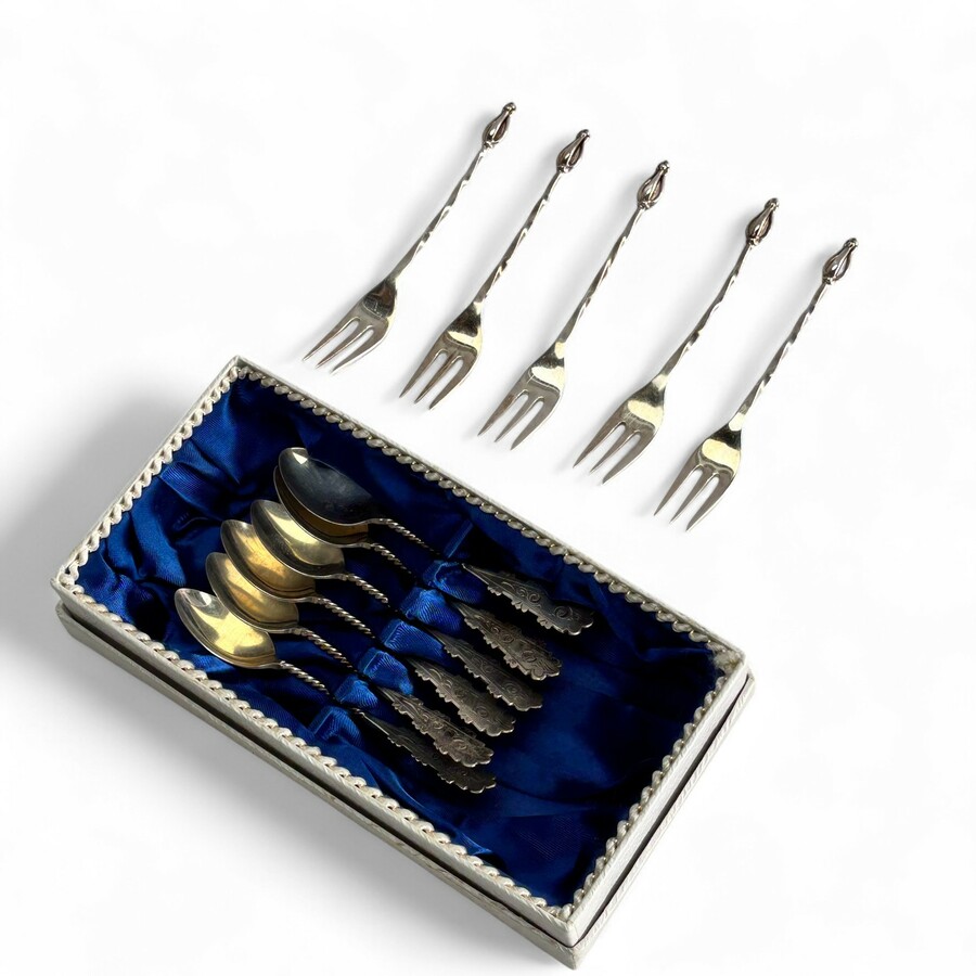 Vijf zilveren vorkjes (van Kempen) en zes lepeltjes (van der Meulen)