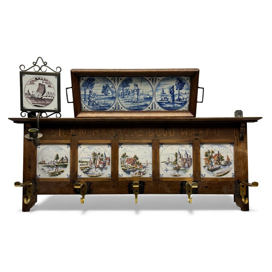 Lot tegels in dienblad en kapstok