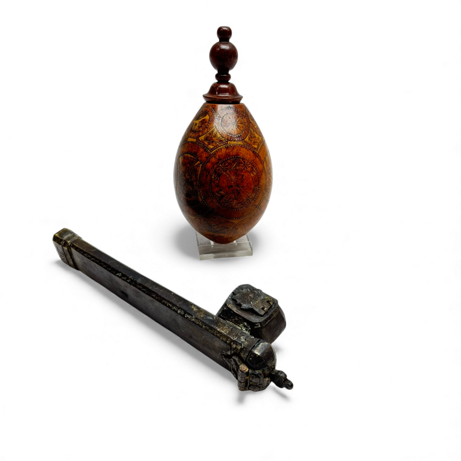 Lot met Ottomaans reisinktstel en een kruitflacon
