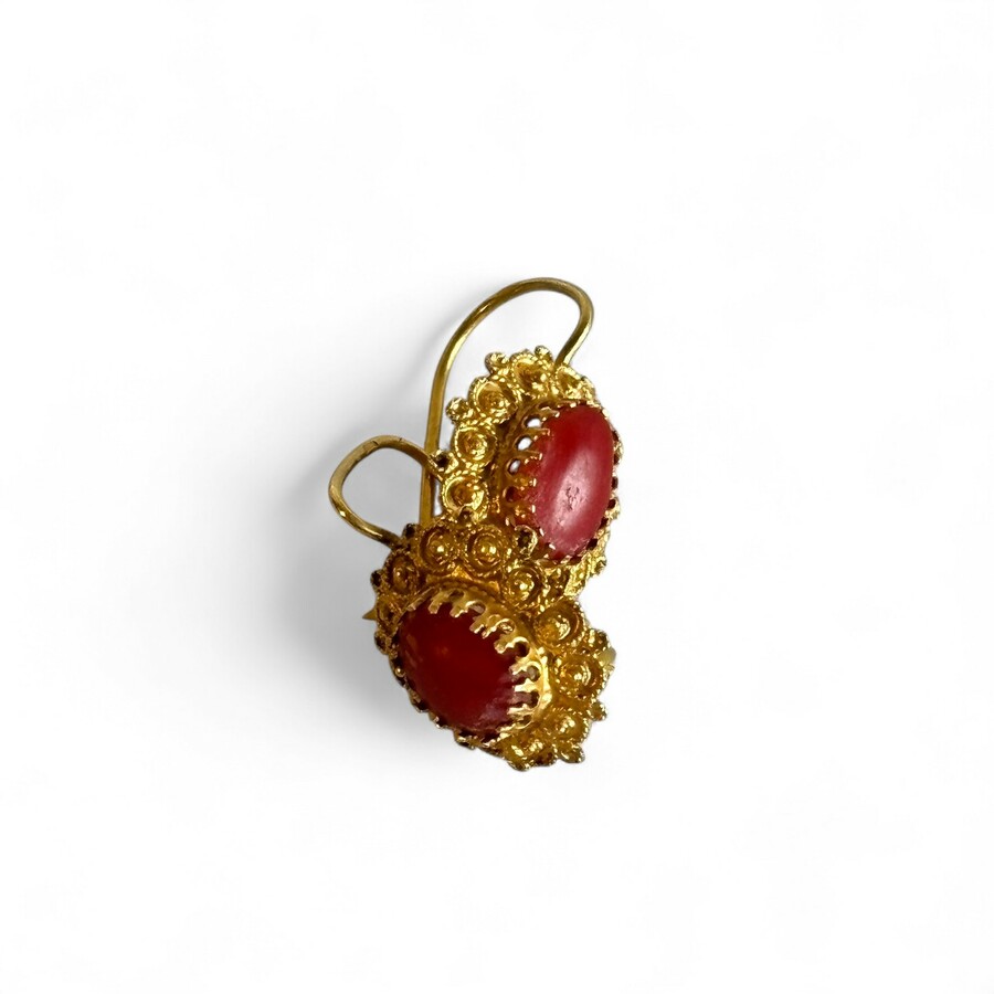Gouden oorbellen met bloedkoraal
