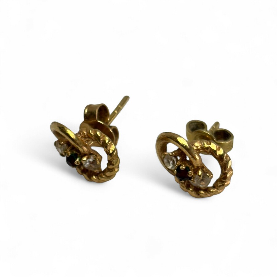Gouden oorknoppen met robijn en zirkonia
