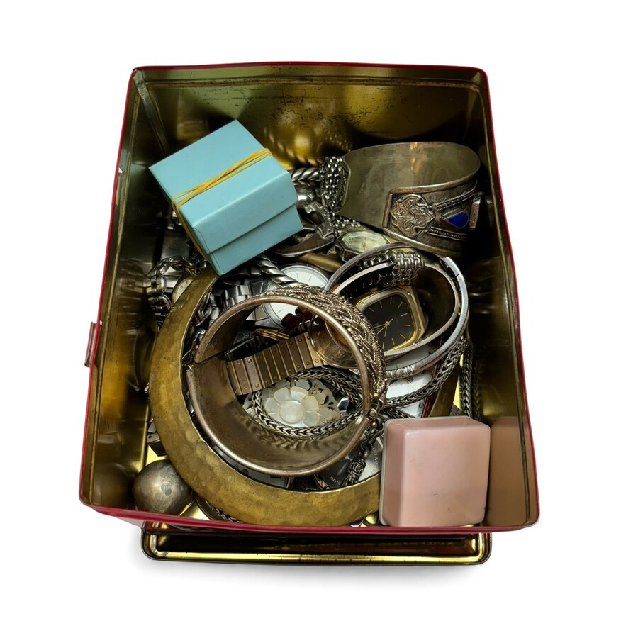 Lot diverse sieraden in blik