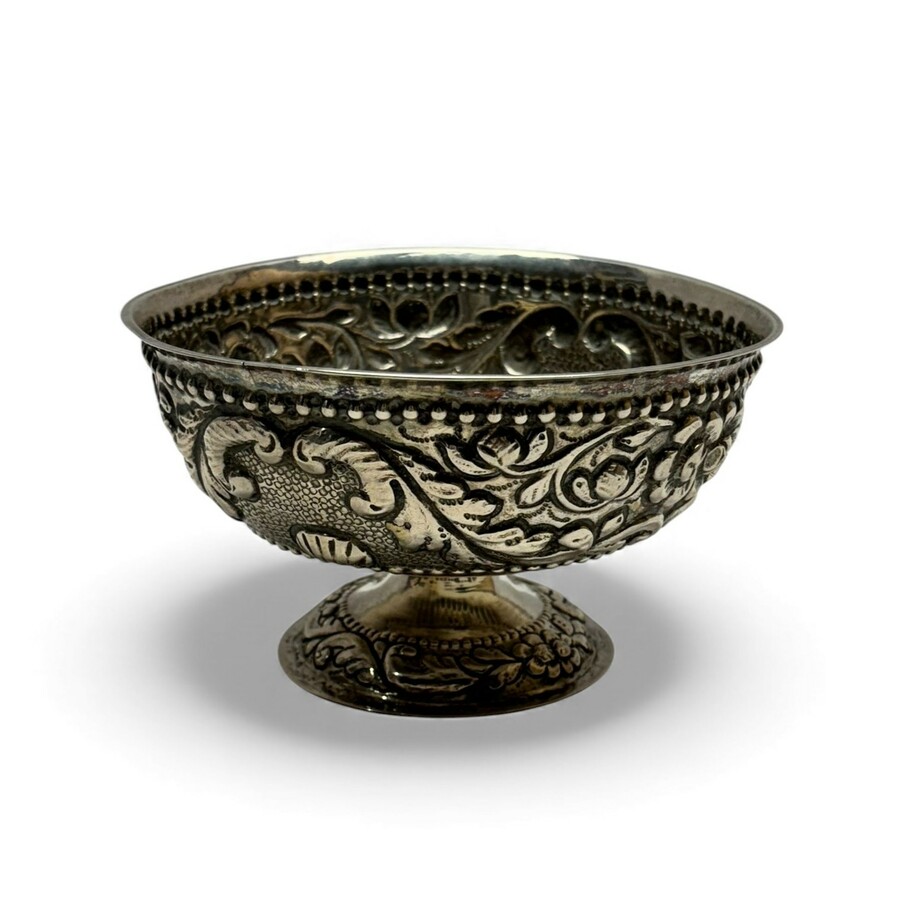 Een antieke 2e gehalte (835/1000) zilveren gedreven roomkom.