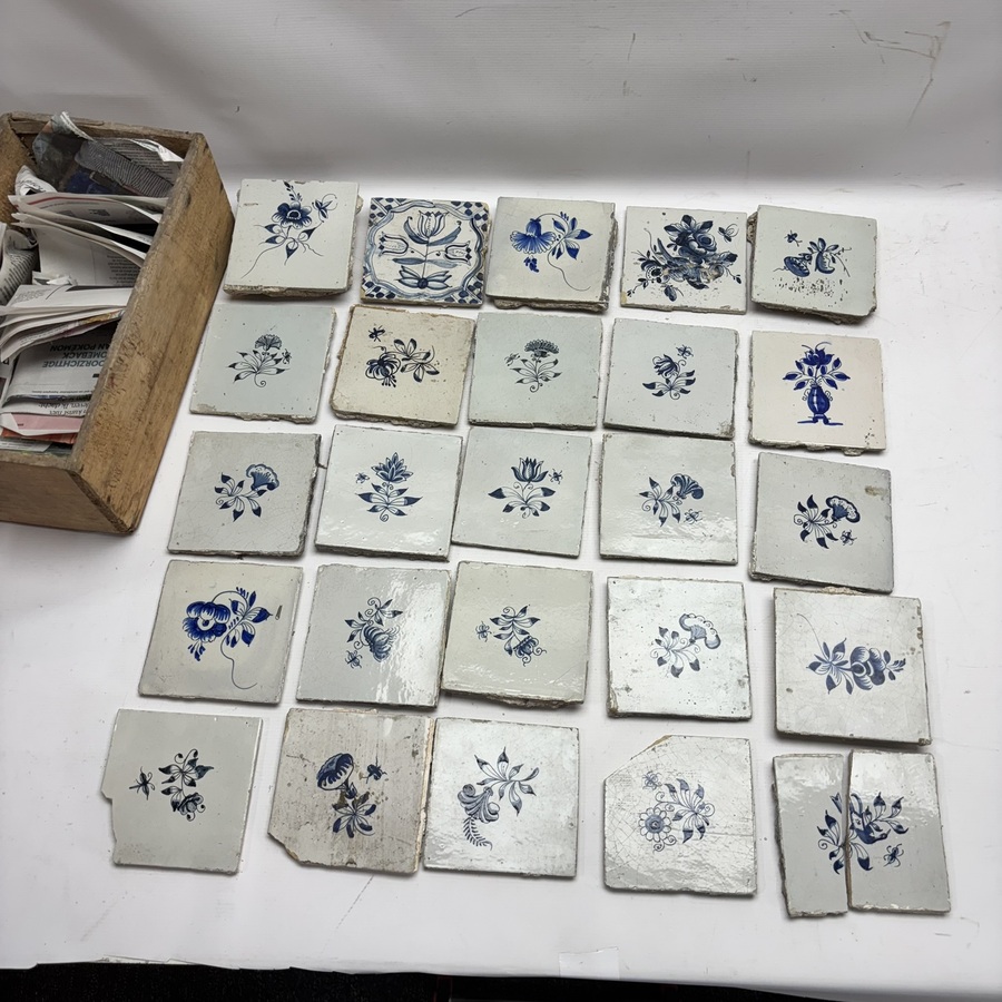 Lot antieke blauw-witte Friese bloemtegels (25x)