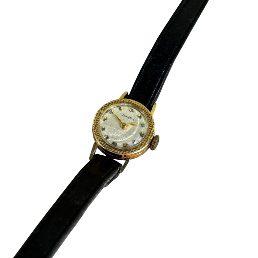 Een fluwelen tas aan een 2e gehalte (835/1000) zilveren beugel.