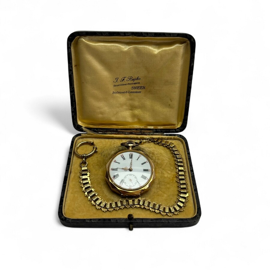 Gouden herenzakhorloge aan chatelaine