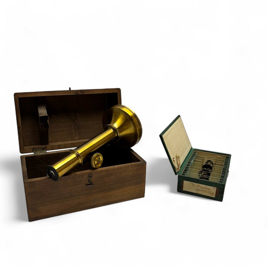 19e eeuwse trommelmicroscoop met preparaten, L.C. Th. Marius, Utrecht