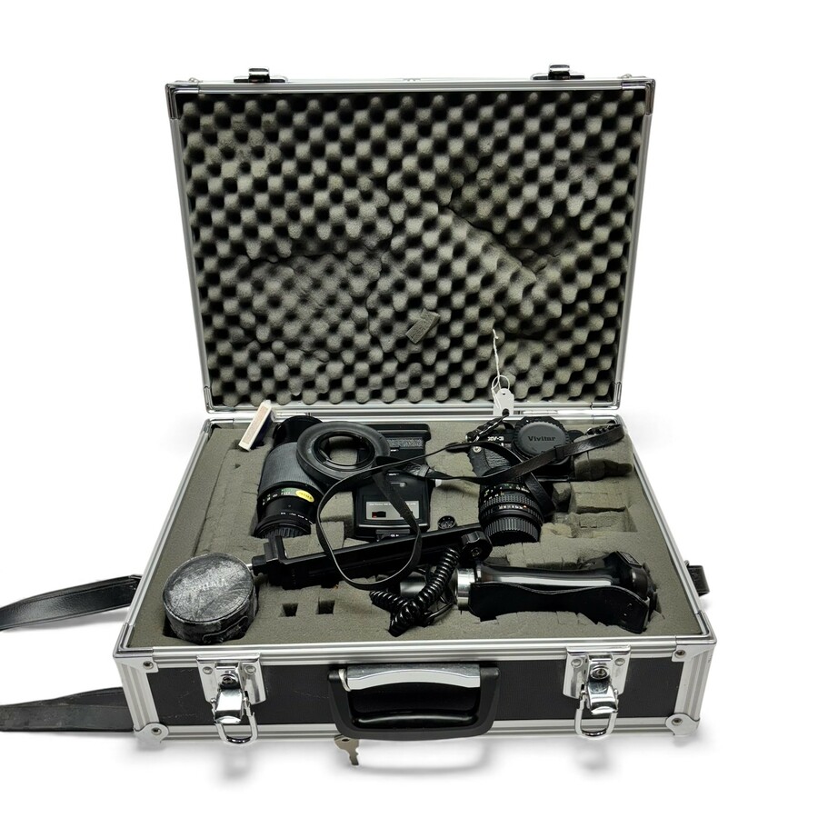 Vivitar XV-3 analoge camera met lenzen en accessoires