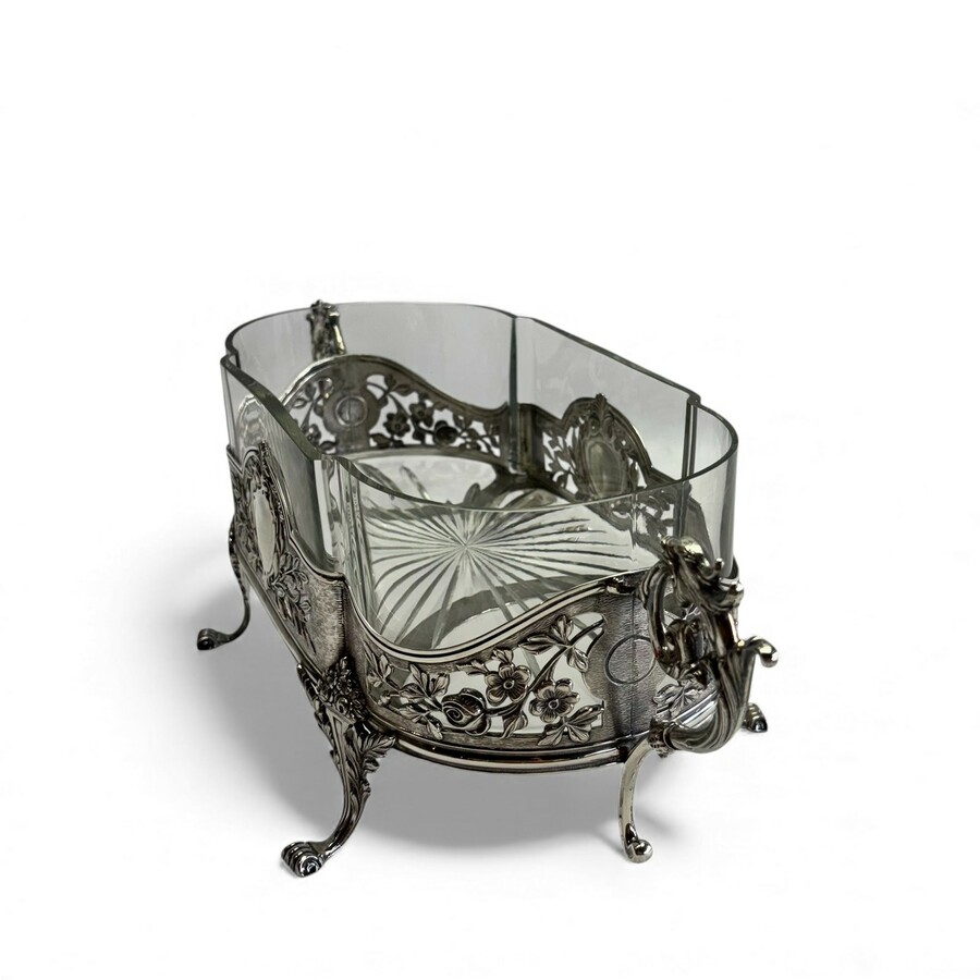 Jardiniere met kristallen binnenbak en eerste gehalte zilveren montuur, Aubert Den Haag.