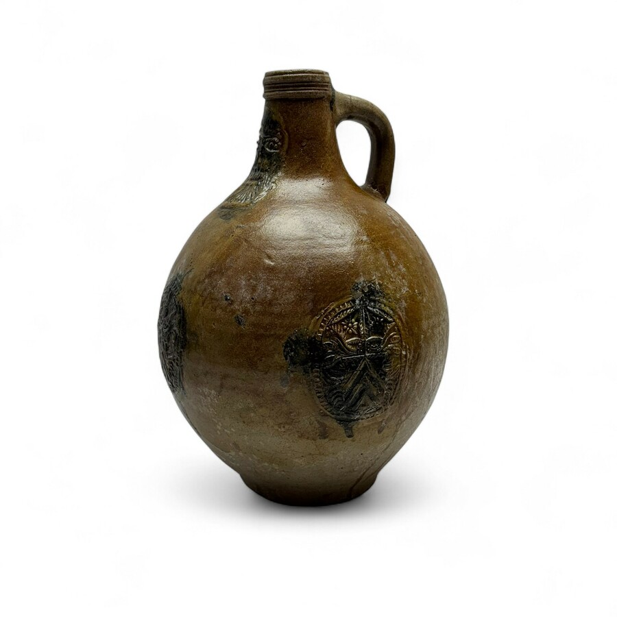 18e eeuwse houten pijpenhouder met messing ornamentiek