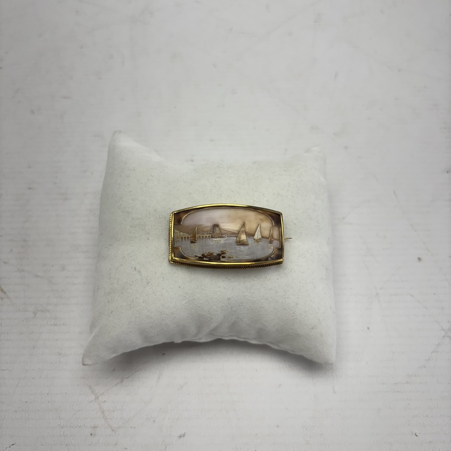 Gouden broche met camee, zeilschepen