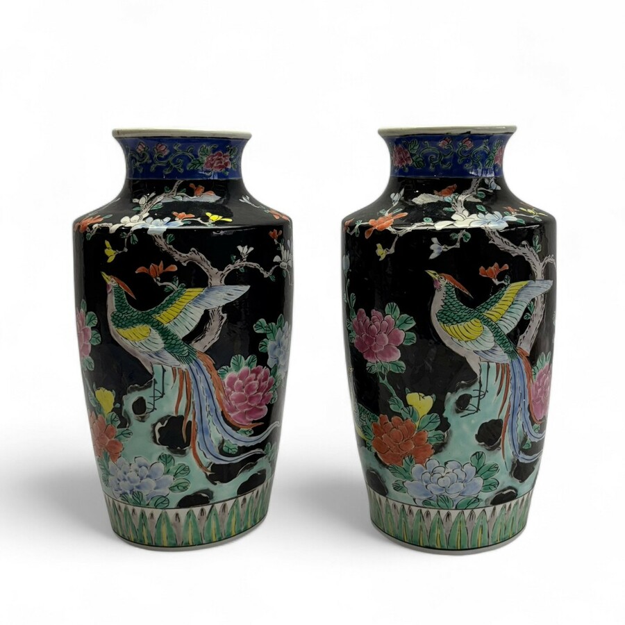 Twee Famille Noire vazen
