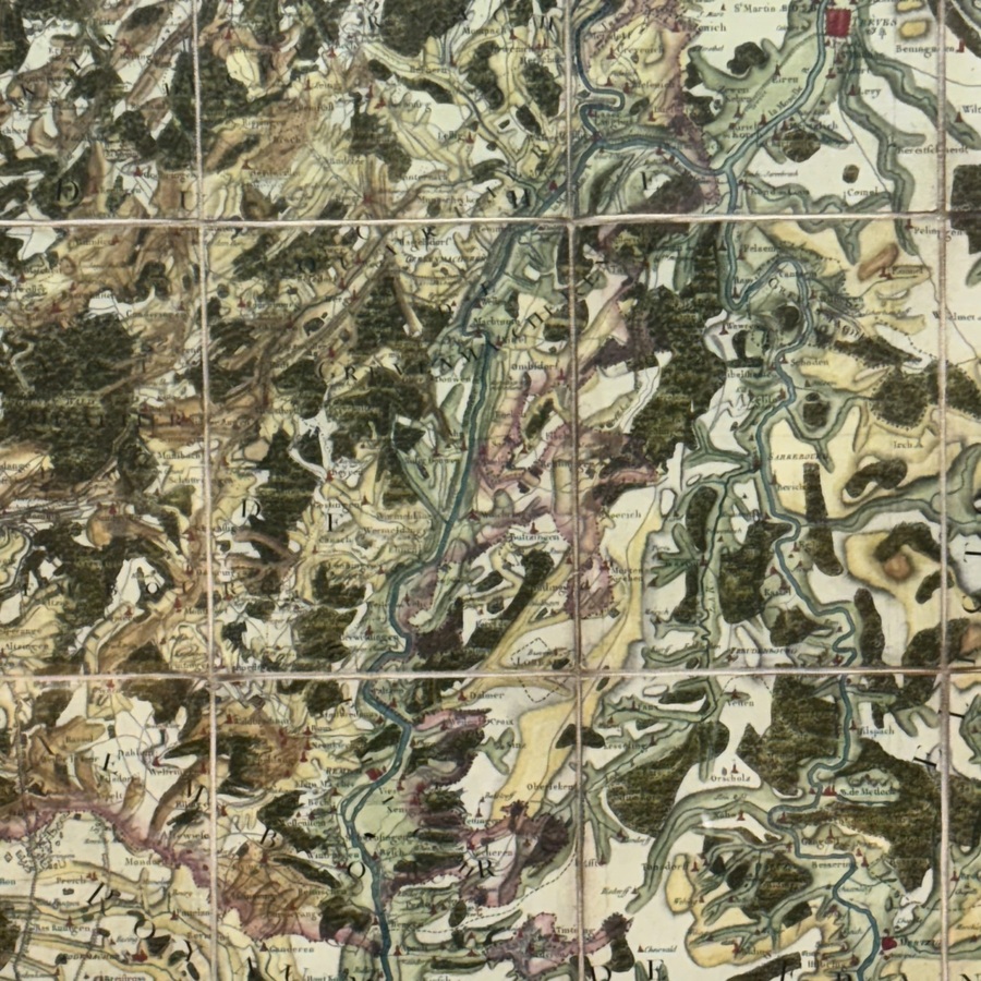 Duitse 18e eeuwse wandelkaart in lijst
