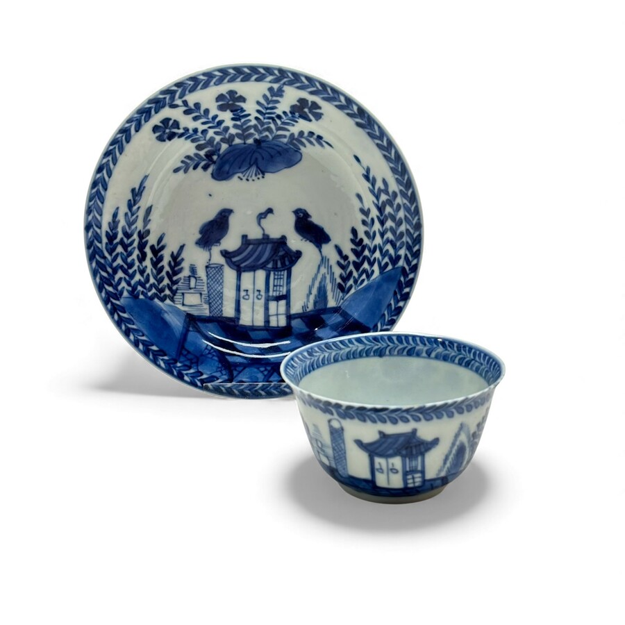Een KangXi Chinees porseleinen kop en schotels. Koekoek uit het huisje.