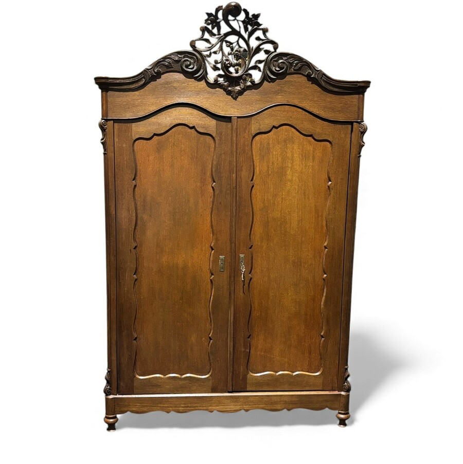 Een eiken linnenkast met kuif