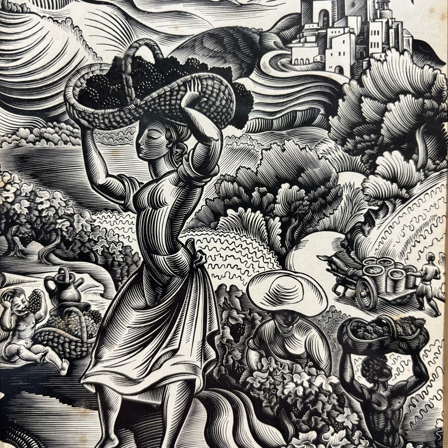 M. P. Filbri. Schilderij manfiguur met kan op slee.