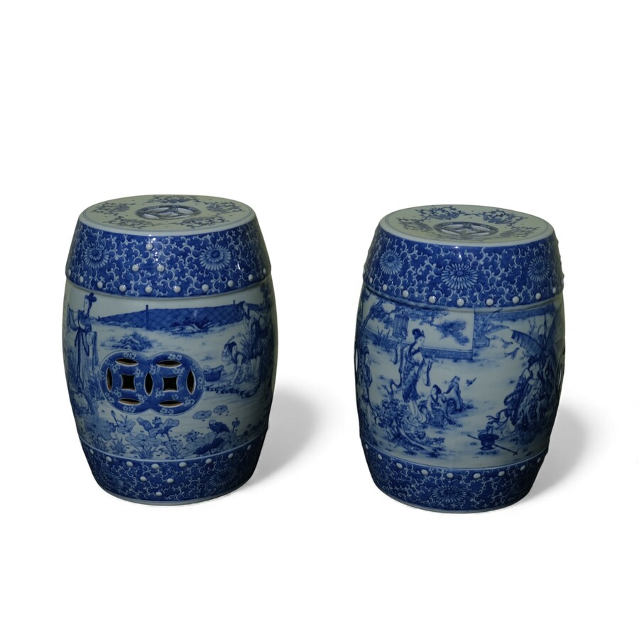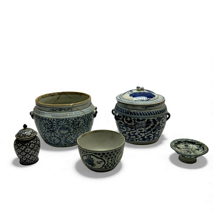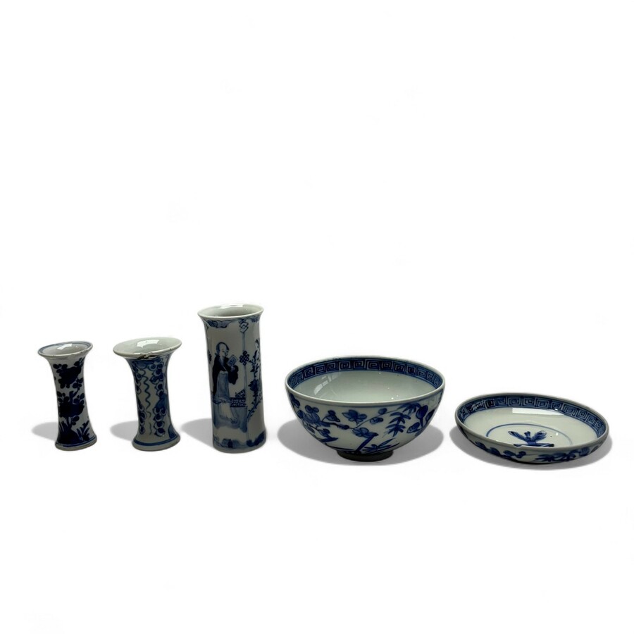Lot van vijf stuks Chinees blauw/wit porselein.