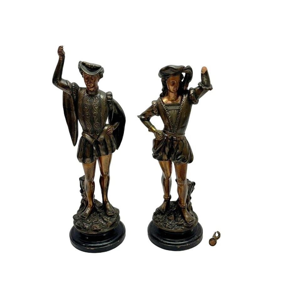 Twee 19e eeuwse terracotta sculpturen, edelman en vrouw
