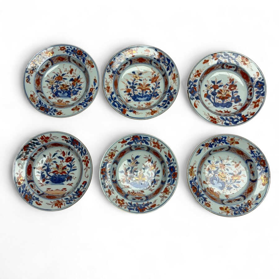 Zes 18e eeuwse Chinees porseleinen imari borden, Qianlong periode