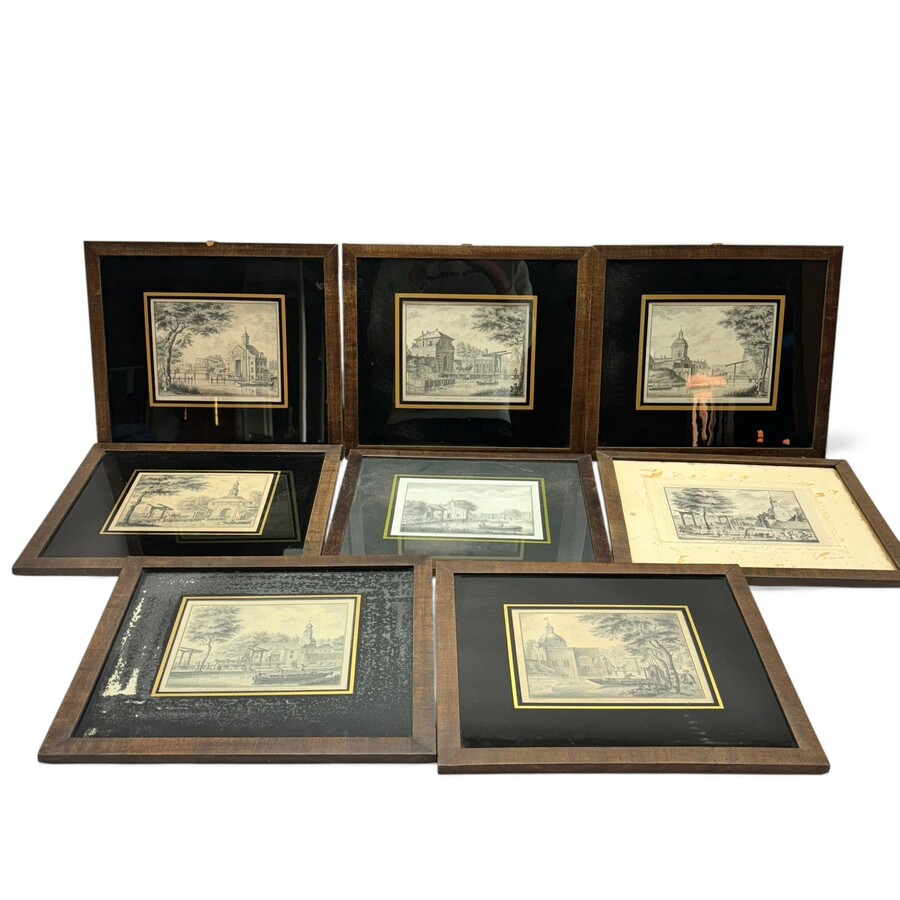 Lot 18e eeuwse kopergravures, stadspoorten Leiden (8x)