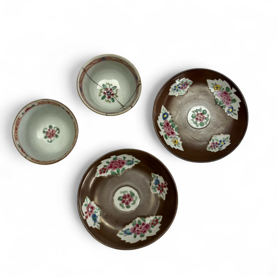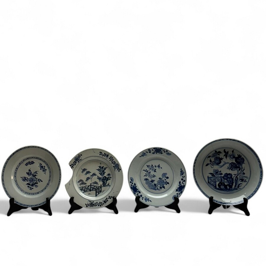 Vier Qianlong porseleinen schotels, met diverse decors.
