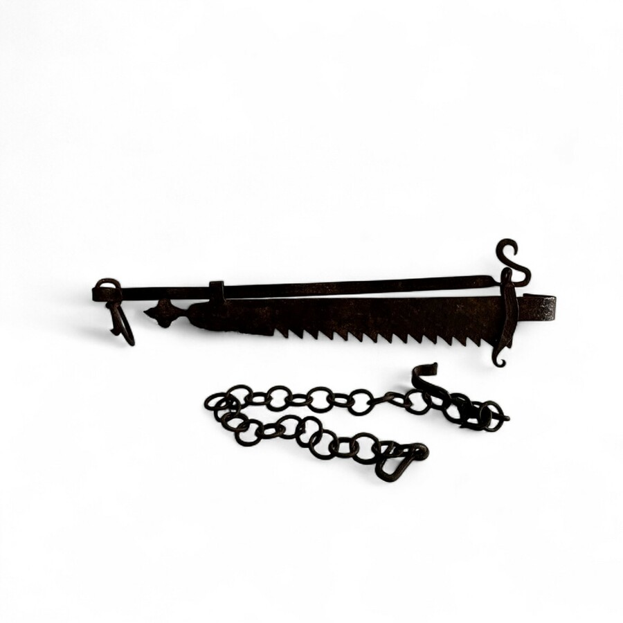 18e eeuwse smeedijzeren vuurhaal met ketting
