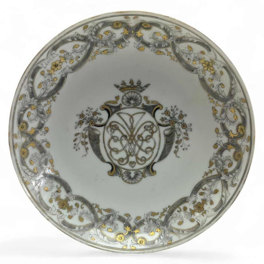 Encre de chine schoteltje met monogram, 18e eeuws