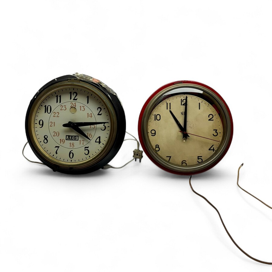 Twee jaren 50 keukenklokken. AEG en NUFA