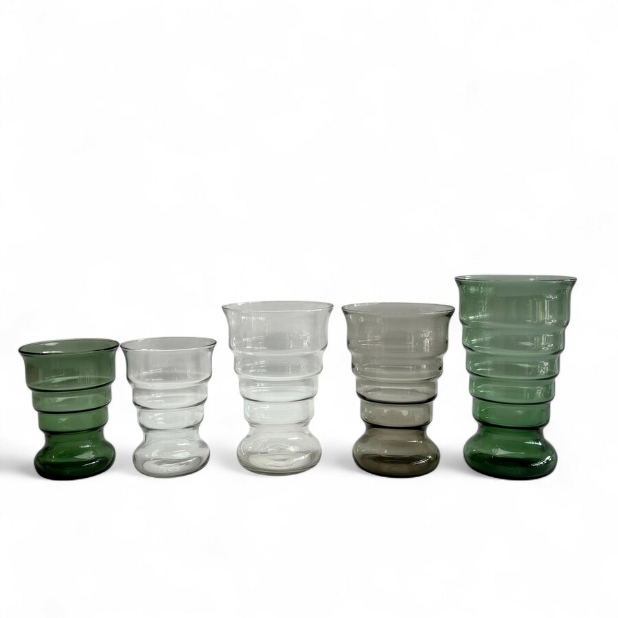 K.P.C. de Bazel ontwerp. Vijf glazen ribbelvazen.