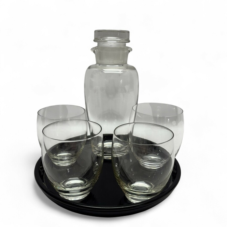 Gerda Strömberg (1879-1960) glazen sapkan met vier glazen op onderschotel.