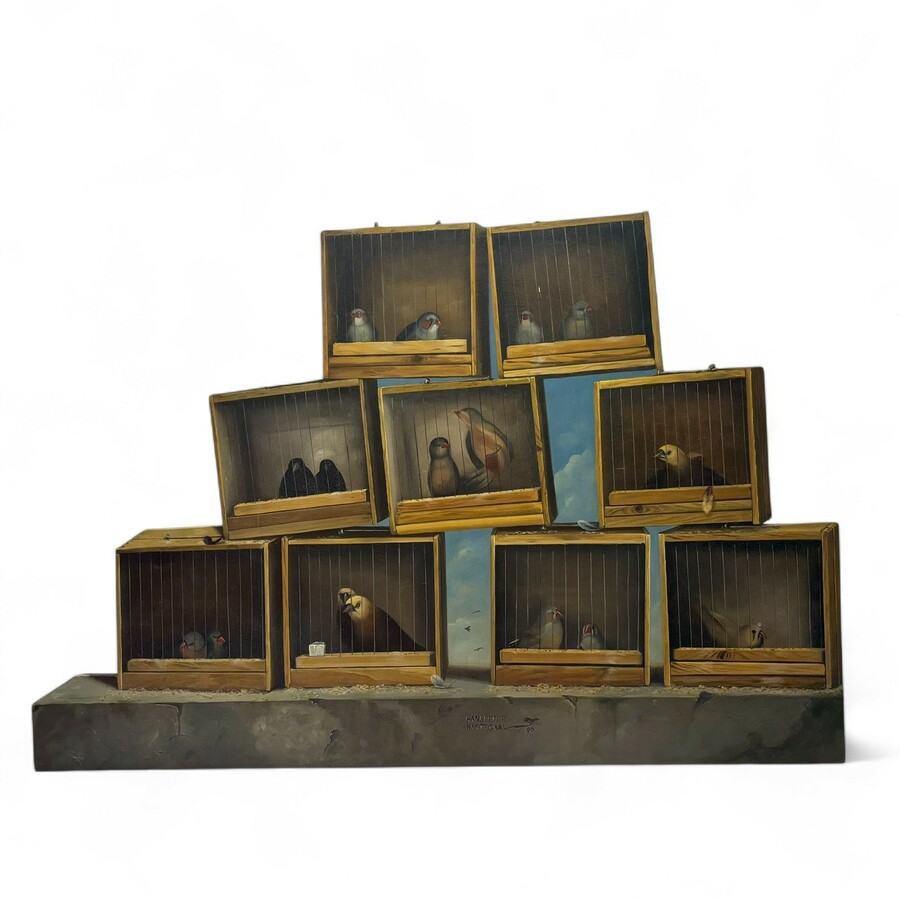 Hans Peter Nagtegaal (1944) - trompe l'oeil met vogelkooitjes
