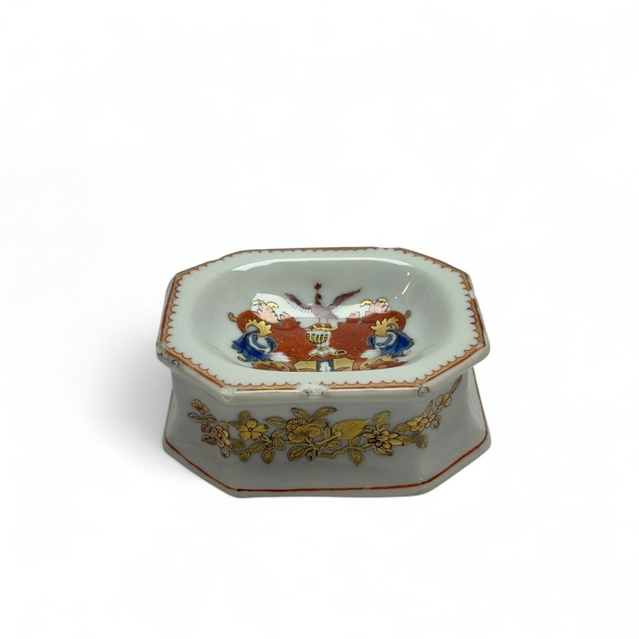 18e eeuws Chinees porseleinen zoutvaatje met familiewapen Valckenier