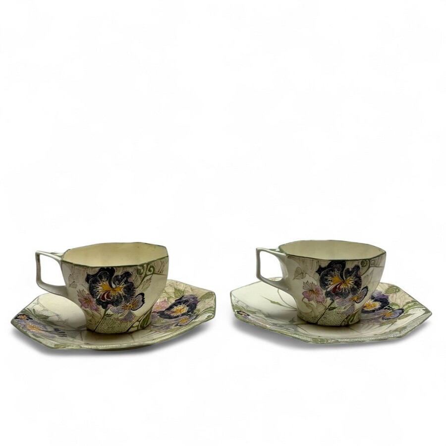 Twee eierschaal kop en schotels, Rozenburg, Jacobus Willem van Rossum 1902