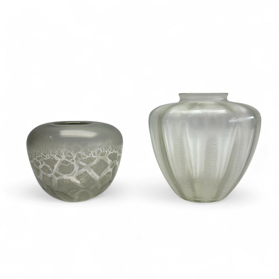 A.D. Copier en W.J. Rozendaal. Twee blankglazen vazen met tin craquelé.