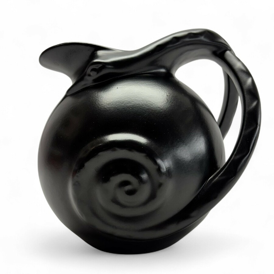 Schoonhoven, zwart platelen kan met slangvormige greep.