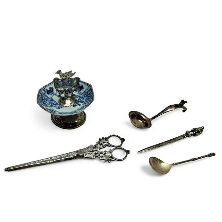 Lot divers zilver, o.a. asbakje met Chinees porselein en naaischaar