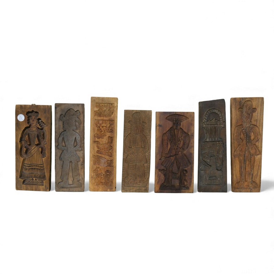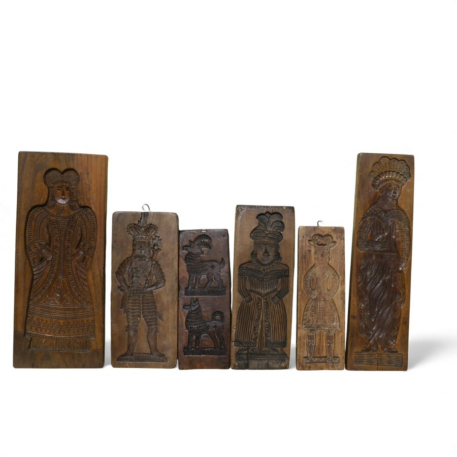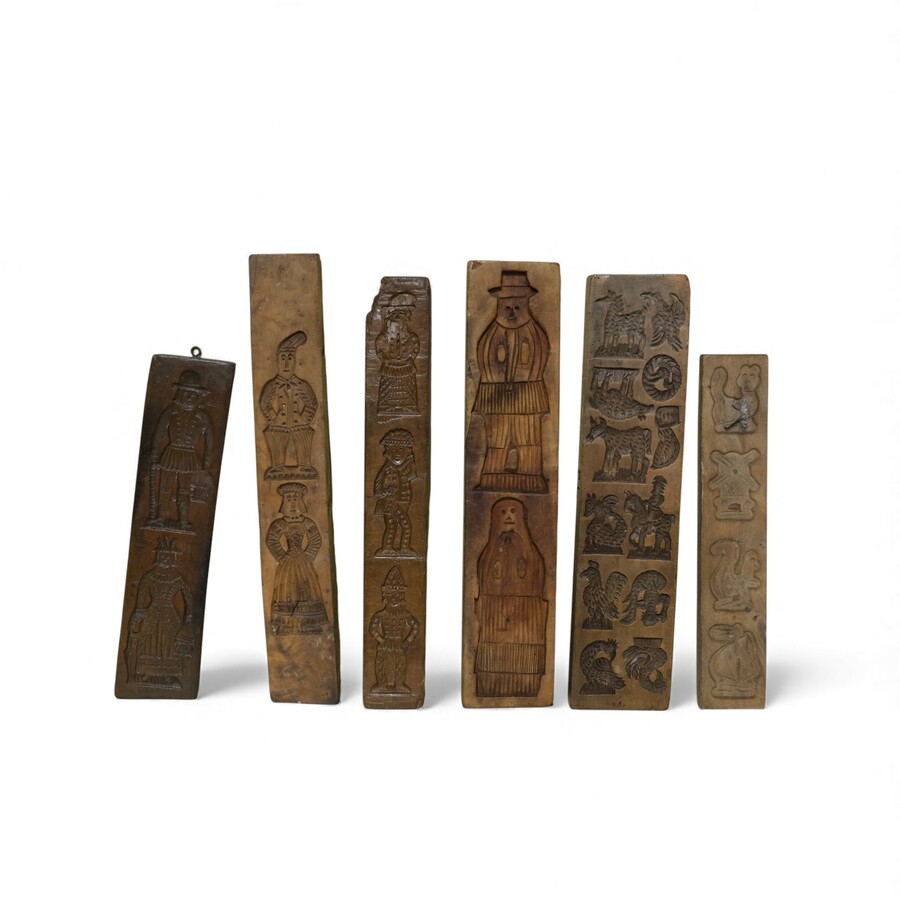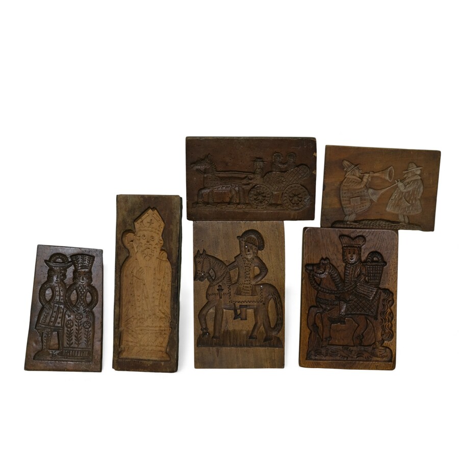 Lot koekplanken met onder andere een voorstelling van een geit en hond, een soldaat en diverse personen.