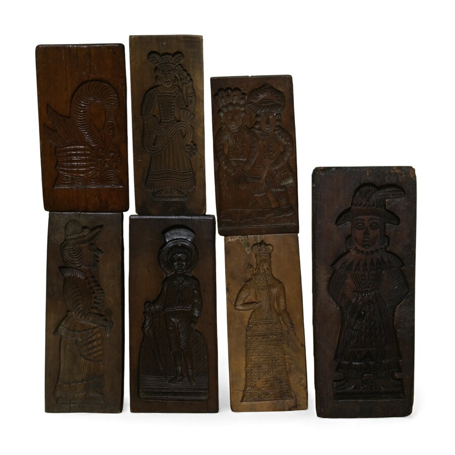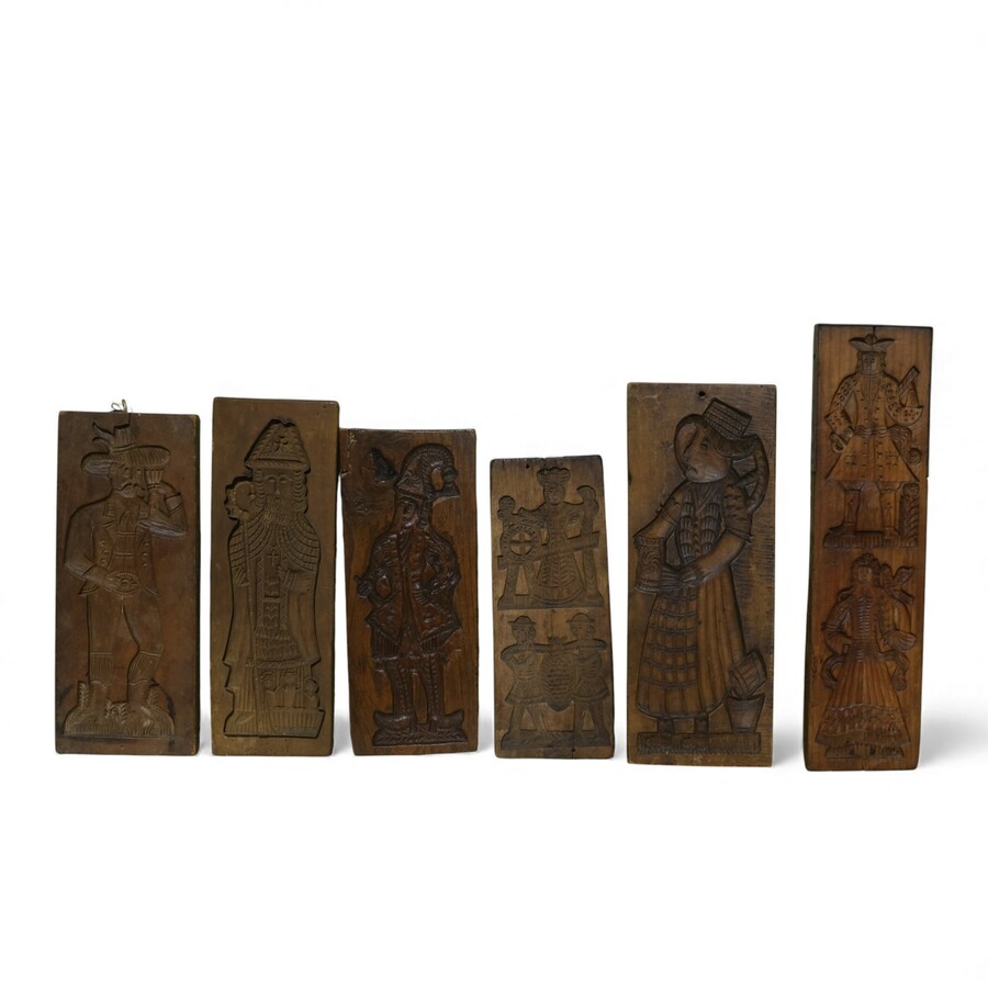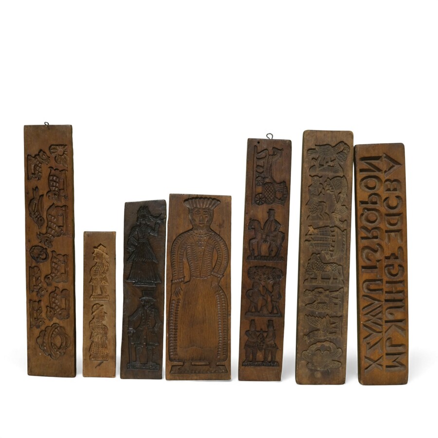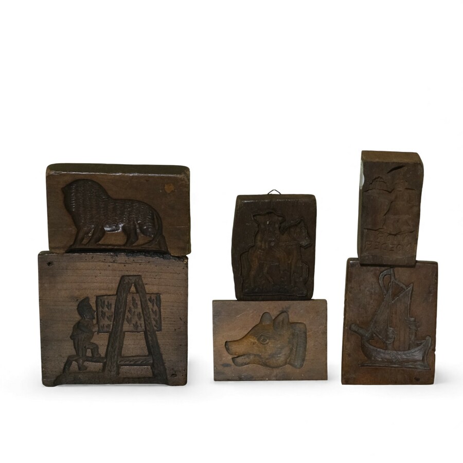 Lot koekplanken met onder andere een voorstelling van een geit en hond, een soldaat en diverse personen.