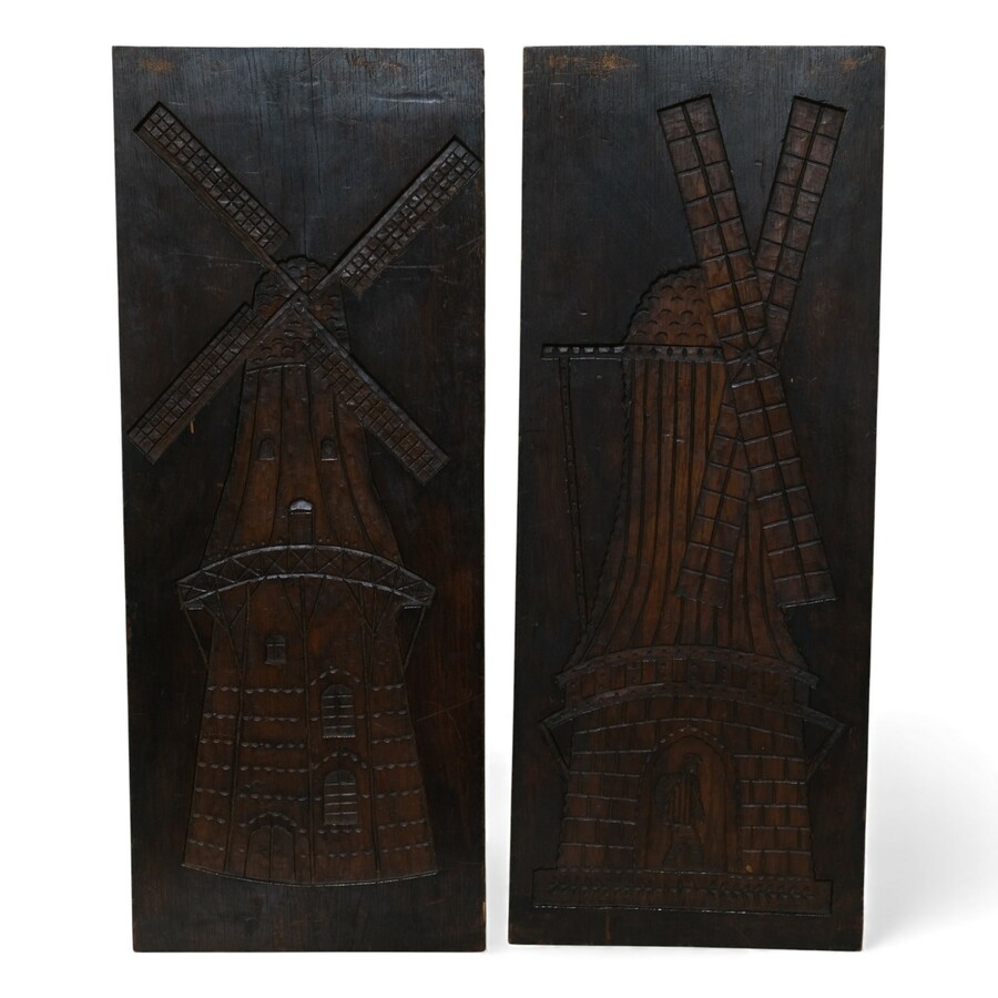 Lot van 2 grote koekplanken met een voorstellingen van molens.